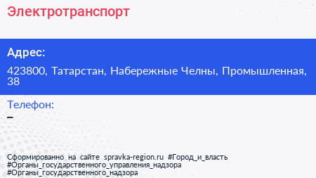 Электротранспорт по адресу 423800, Татарстан, Набережные Челны, Промышленная, 38 в дальнейшем Организация, размещена в следующих категориях: