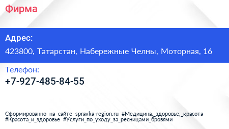 Фирма по адресу 423800, Татарстан, Набережные Челны, Моторная, 16 в дальнейшем Организация, размещена в следующих категориях: