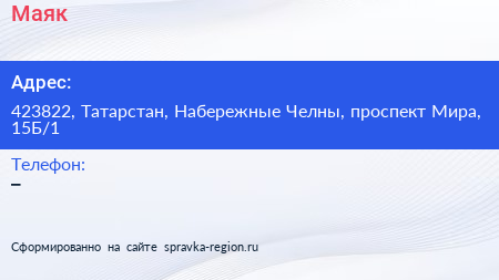 Маяк по адресу 423822, Татарстан, Набережные Челны, проспект Мира, 15Б/1 в дальнейшем Организация, размещена в следующих категориях: