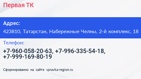 Первая ТК по адресу 423810, Татарстан, Набережные Челны, 2-й комплекс, 18 в дальнейшем Организация, размещена в следующих категориях: