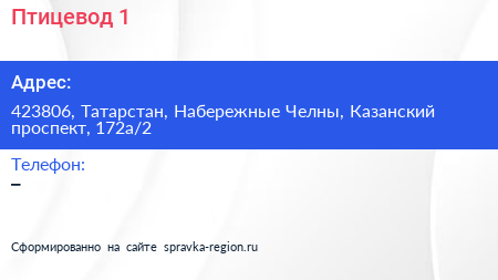 Птицевод-1 по адресу 423806, Татарстан, Набережные Челны, Казанский проспект, 172а/2 в дальнейшем Организация, размещена в следующих категориях: