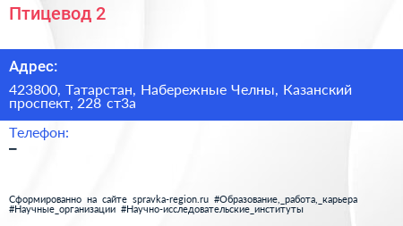Птицевод-2 по адресу 423800, Татарстан, Набережные Челны, Казанский проспект, 228 ст3а в дальнейшем Организация, размещена в следующих категориях: