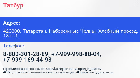Татбур по адресу 423800, Татарстан, Набережные Челны, Хлебный проезд, 18 ст1 в дальнейшем Организация, размещена в следующих категориях: