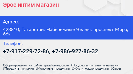 Эрос, интим-магазин по адресу 423810, Татарстан, Набережные Челны, проспект Мира, 66а в дальнейшем Организация, размещена в следующих категориях: