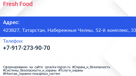 Fresh Food по адресу 423827, Татарстан, Набережные Челны, 52-й комплекс, 33 в дальнейшем Организация, размещена в следующих категориях: