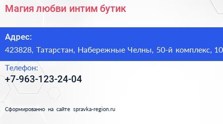 Магия любви, интим-бутик по адресу 423828, Татарстан, Набережные Челны, 50-й комплекс, 10 в дальнейшем Организация, размещена в следующих категориях: