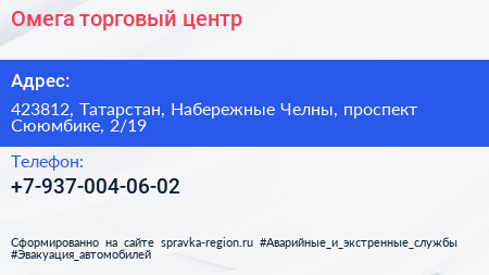 Омега, торговый центр по адресу 423812, Татарстан, Набережные Челны, проспект Сююмбике, 2/19 в дальнейшем Организация, размещена в следующих категориях: