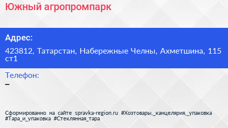 Южный, агропромпарк по адресу 423812, Татарстан, Набережные Челны, Ахметшина, 115 ст1 в дальнейшем Организация, размещена в следующих категориях: