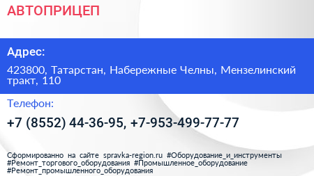 АВТОПРИЦЕП по адресу 423800, Татарстан, Набережные Челны, Мензелинский тракт, 110 в дальнейшем Организация, размещена в следующих категориях: