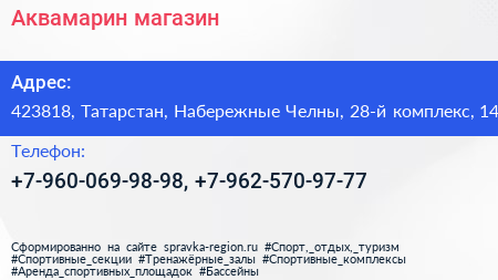 Аквамарин, магазин по адресу 423818, Татарстан, Набережные Челны, 28-й комплекс, 14 в дальнейшем Организация, размещена в следующих категориях: