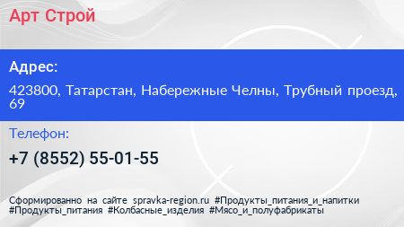 Арт-Cтрой по адресу 423800, Татарстан, Набережные Челны, Трубный проезд, 69 в дальнейшем Организация, размещена в следующих категориях: