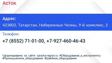 Асток по адресу 423802, Татарстан, Набережные Челны, 9-й комплекс, 2 в дальнейшем Организация, размещена в следующих категориях:
