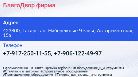 БлагоДвор, фирма по адресу 423800, Татарстан, Набережные Челны, Авторемонтная, 15а в дальнейшем Организация, размещена в следующих категориях: