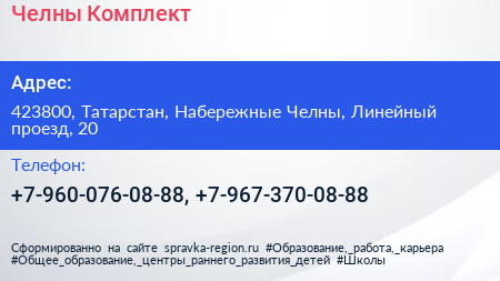Челны-Комплект по адресу 423800, Татарстан, Набережные Челны, Линейный проезд, 20 в дальнейшем Организация, размещена в следующих категориях: