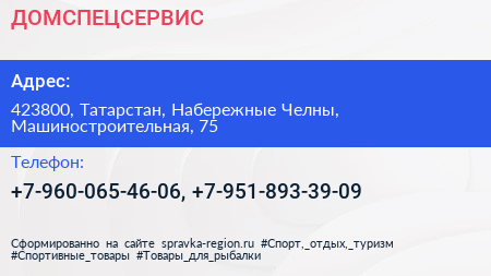 ДОМСПЕЦСЕРВИС по адресу 423800, Татарстан, Набережные Челны, Машиностроительная, 75 в дальнейшем Организация, размещена в следующих категориях: