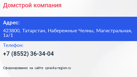 Домстрой, компания по адресу 423800, Татарстан, Набережные Челны, Магистральная, 1а/1 в дальнейшем Организация, размещена в следующих категориях: