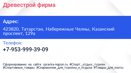 Древестрой, фирма по адресу 423820, Татарстан, Набережные Челны, Казанский проспект, 129а в дальнейшем Организация, размещена в следующих категориях: