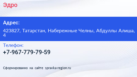 Эдро по адресу 423827, Татарстан, Набережные Челны, Абдуллы Алиша, 4 в дальнейшем Организация, размещена в следующих категориях: