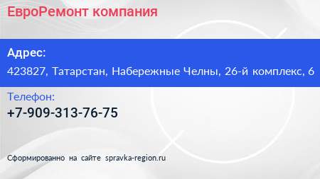 ЕвроРемонт, компания по адресу 423827, Татарстан, Набережные Челны, 26-й комплекс, 6 в дальнейшем Организация, размещена в следующих категориях: