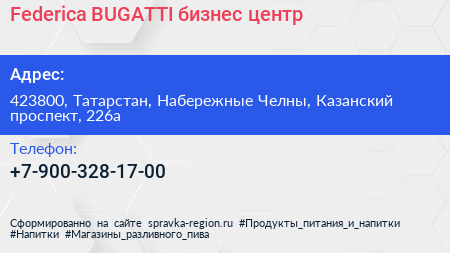 Federica BUGATTI, бизнес-центр по адресу 423800, Татарстан, Набережные Челны, Казанский проспект, 226а в дальнейшем Организация, размещена в следующих категориях: