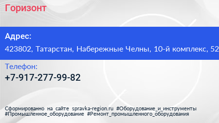Горизонт по адресу 423802, Татарстан, Набережные Челны, 10-й комплекс, 52 в дальнейшем Организация, размещена в следующих категориях: