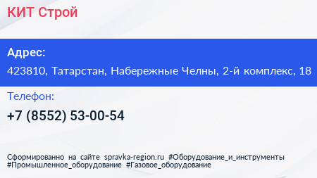 КИТ Строй по адресу 423810, Татарстан, Набережные Челны, 2-й комплекс, 18 в дальнейшем Организация, размещена в следующих категориях: