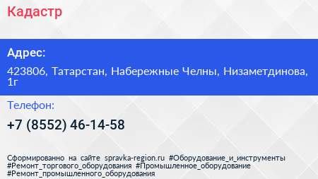 Кадастр по адресу 423806, Татарстан, Набережные Челны, Низаметдинова, 1г в дальнейшем Организация, размещена в следующих категориях: