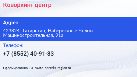 Коворкинг-центр по адресу 423824, Татарстан, Набережные Челны, Машиностроительная, 91а в дальнейшем Организация, размещена в следующих категориях: