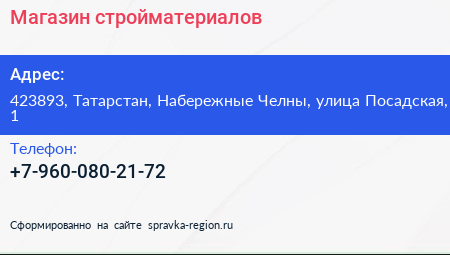 Магазин стройматериалов по адресу 423893, Татарстан, Набережные Челны, улица Посадская, 1 в дальнейшем Организация, размещена в следующих категориях: