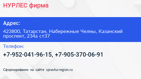 НУРЛЕС, фирма по адресу 423800, Татарстан, Набережные Челны, Казанский проспект, 234а ст37 в дальнейшем Организация, размещена в следующих категориях: