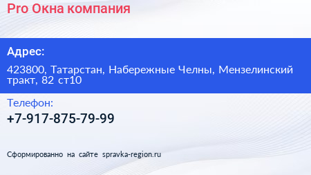 Pro Окна, компания по адресу 423800, Татарстан, Набережные Челны, Мензелинский тракт, 82 ст10 в дальнейшем Организация, размещена в следующих категориях: