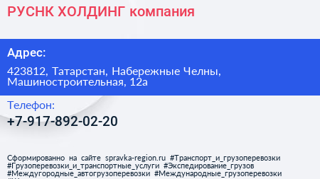 РУСНК-ХОЛДИНГ, компания по адресу 423812, Татарстан, Набережные Челны, Машиностроительная, 12а в дальнейшем Организация, размещена в следующих категориях: