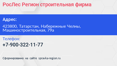 РосЛес Регион, строительная фирма по адресу 423800, Татарстан, Набережные Челны, Машиностроительная, 79а в дальнейшем Организация, размещена в следующих категориях: