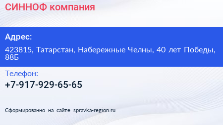 СИННОФ, компания по адресу 423815, Татарстан, Набережные Челны, 40 лет Победы, 88Б в дальнейшем Организация, размещена в следующих категориях: