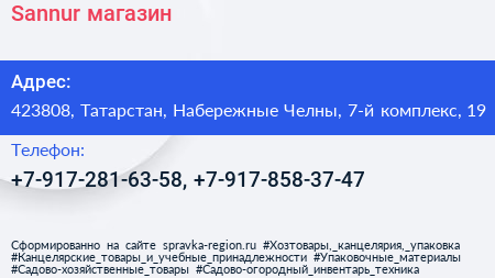 Sannur, магазин по адресу 423808, Татарстан, Набережные Челны, 7-й комплекс, 19 в дальнейшем Организация, размещена в следующих категориях: