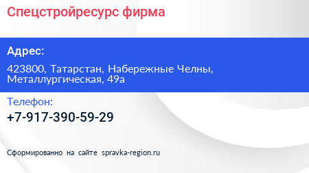 Спецстройресурс, фирма по адресу 423800, Татарстан, Набережные Челны, Металлургическая, 49а в дальнейшем Организация, размещена в следующих категориях:
