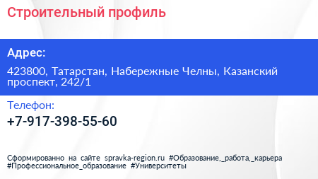Строительный профиль по адресу 423800, Татарстан, Набережные Челны, Казанский проспект, 242/1 в дальнейшем Организация, размещена в следующих категориях: