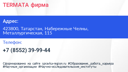 TERMATA, фирма по адресу 423800, Татарстан, Набережные Челны, Металлургическая, 115 в дальнейшем Организация, размещена в следующих категориях:
