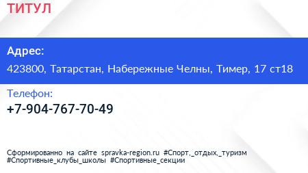 ТИТУЛ по адресу 423800, Татарстан, Набережные Челны, Тимер, 17 ст18 в дальнейшем Организация, размещена в следующих категориях: