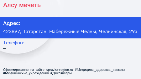 Алсу, мечеть по адресу 423897, Татарстан, Набережные Челны, Челнинская, 29а в дальнейшем Организация, размещена в следующих категориях: