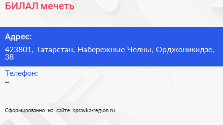 БИЛАЛ, мечеть по адресу 423801, Татарстан, Набережные Челны, Орджоникидзе, 38 в дальнейшем Организация, размещена в следующих категориях:
