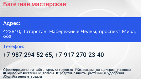 Багетная мастерская по адресу 423810, Татарстан, Набережные Челны, проспект Мира, 66а в дальнейшем Организация, размещена в следующих категориях: