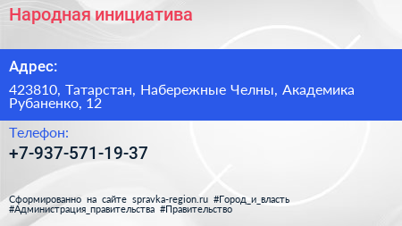 Народная инициатива по адресу 423810, Татарстан, Набережные Челны, Академика Рубаненко, 12 в дальнейшем Организация, размещена в следующих категориях: