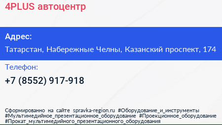 4PLUS, автоцентр по адресу Татарстан, Набережные Челны, Казанский проспект, 174 в дальнейшем Организация, размещена в следующих категориях: