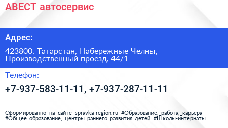 АВЕСТ, автосервис по адресу 423800, Татарстан, Набережные Челны, Производственный проезд, 44/1 в дальнейшем Организация, размещена в следующих категориях: