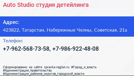 Auto Studio, студия детейлинга по адресу 423822, Татарстан, Набережные Челны, Советская, 21а в дальнейшем Организация, размещена в следующих категориях:
