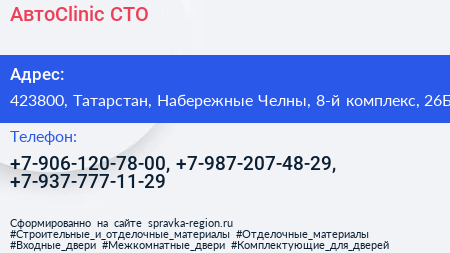 АвтоClinic, СТО по адресу 423800, Татарстан, Набережные Челны, 8-й комплекс, 26Б в дальнейшем Организация, размещена в следующих категориях: