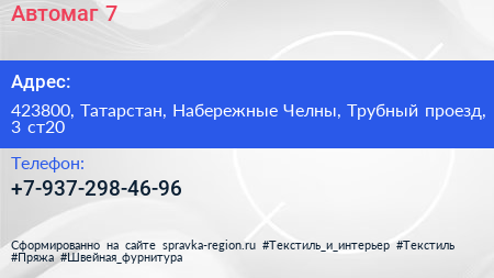 Автомаг №7 по адресу 423800, Татарстан, Набережные Челны, Трубный проезд, 3 ст20 в дальнейшем Организация, размещена в следующих категориях: