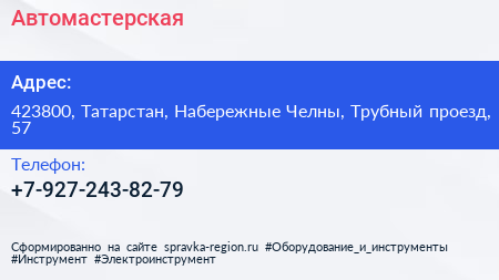 Автомастерская по адресу 423800, Татарстан, Набережные Челны, Трубный проезд, 57 в дальнейшем Организация, размещена в следующих категориях: