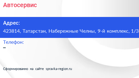 Автосервис по адресу 423814, Татарстан, Набережные Челны, 9-й комплекс, 1/3 в дальнейшем Организация, размещена в следующих категориях:
